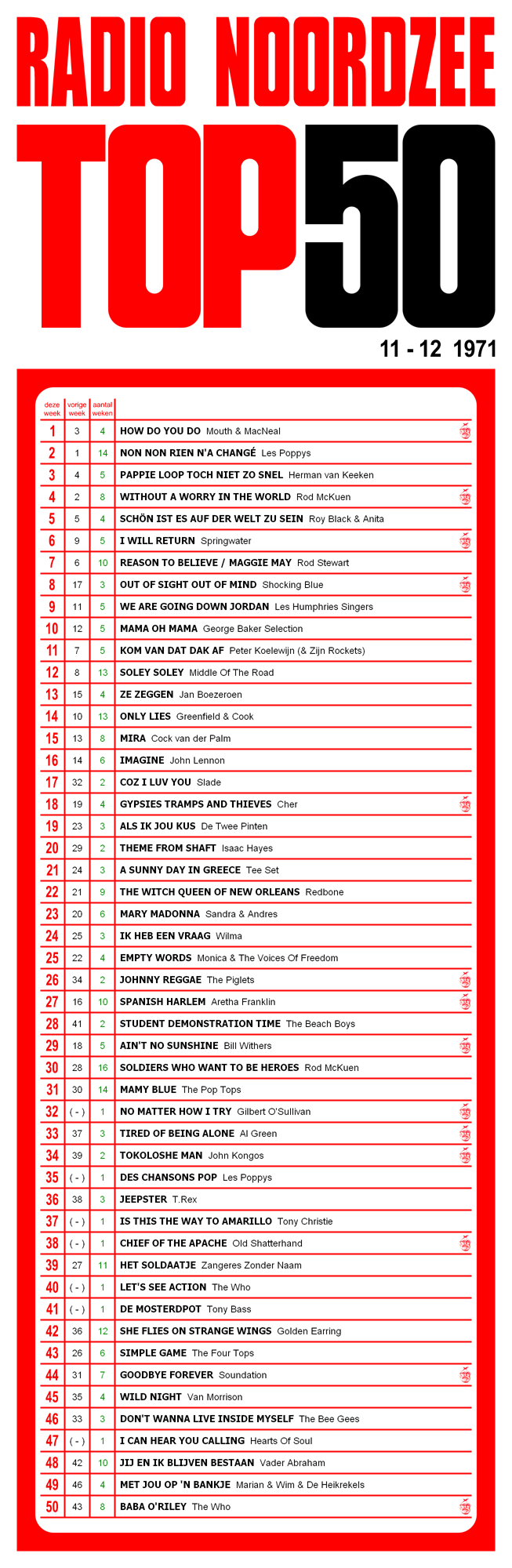Saturday 11.12.11 the top 50 of 11.12.71