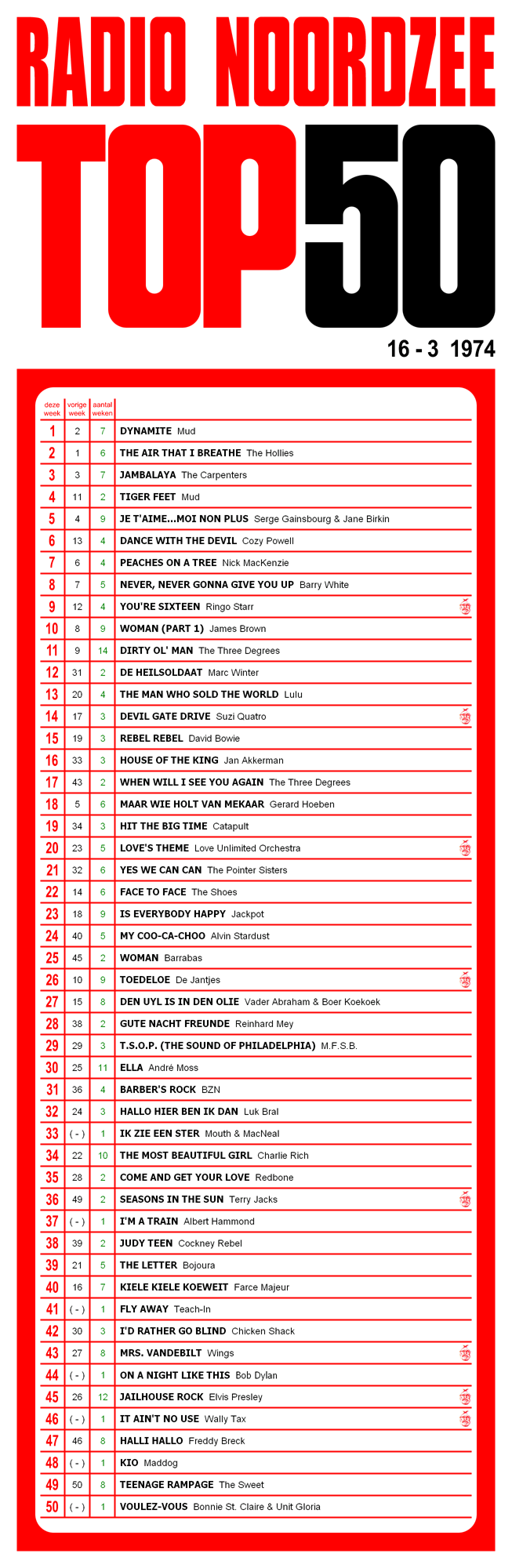 Saturday 12.03.11 the top 50 of 16.03.74